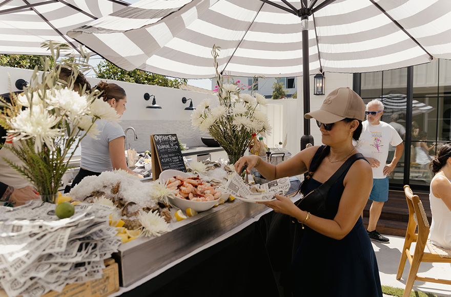 Guests were welcomed with champagne flutes of sparkling wine and a beautifully prepared oyster and shrimp bar under striped umbrellas—luxury touches that captured the lifestyle the property offers.